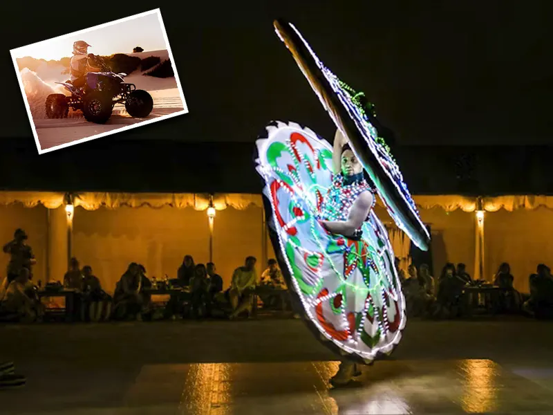 Quad biking gives adventure lovers an exhilarating ride across the desert. When evening comes, relax at a traditional Bedouin camp. Experience cultural performances like Tanura and belly dancing, diving deep into the region’s heritage.